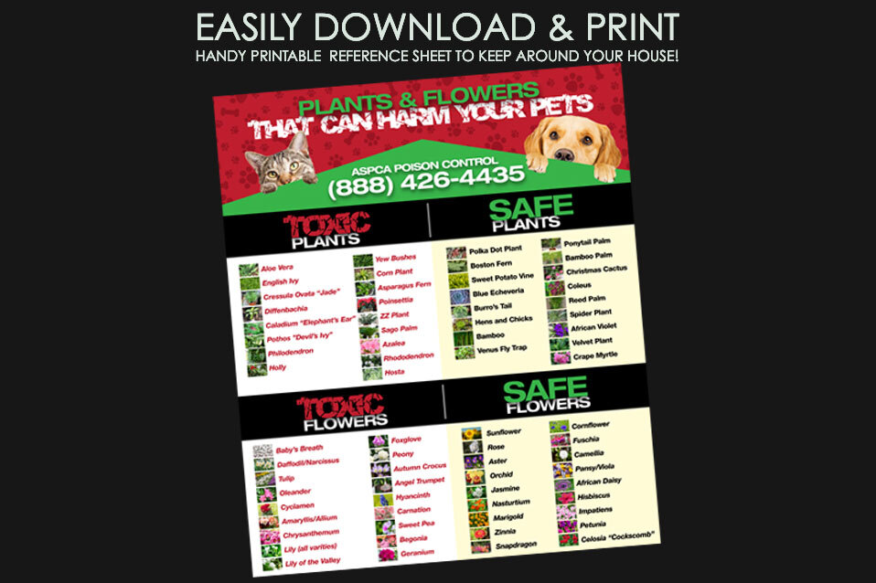 Luckily, you can save yourself the hassle of conducting hours of research and thousands in potential vet bills by taking advantage of our easy-to-read printable list outlining dangerous plants and safe plants for your pet.